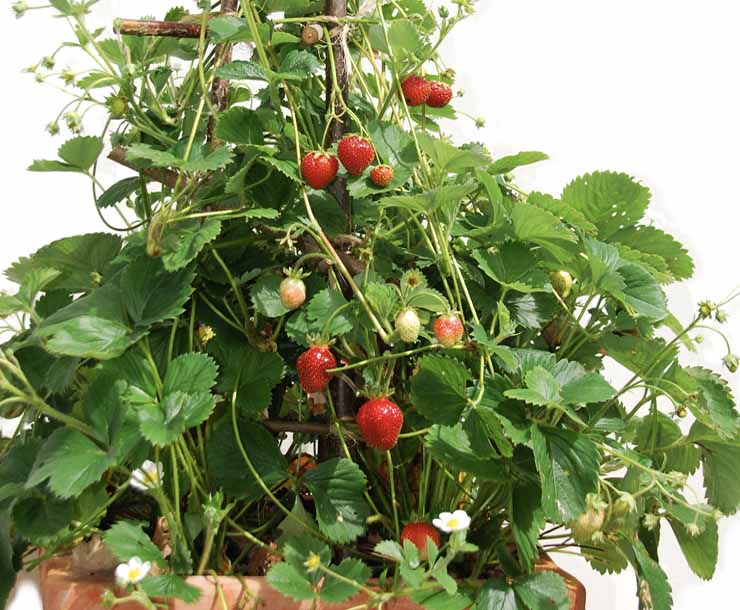 - Amarrando os morangos ao suporte, eles podem crescer até 1,20 m ou mais.